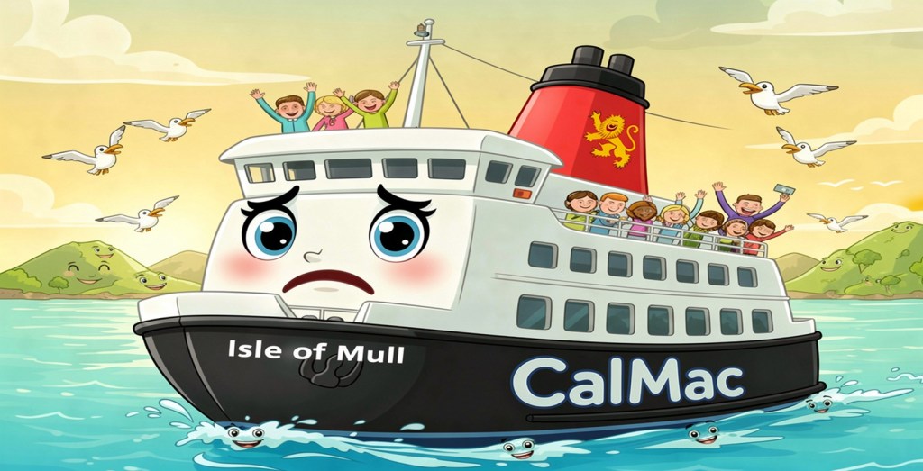 First it was Monday … then Wednesday …. now we’ll probably have to wait until next week for the return of the Isle of Mull. Full text of the message from CalMac is below. However, we are hopeful that the Lord of the Isles may be put on the Craignure service, particularly in view of the busy Music Festival weekend coming up.